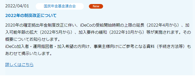 今日iDeCoの公式HPを見たら、65歳まで拡大のお知らせが出ていました。